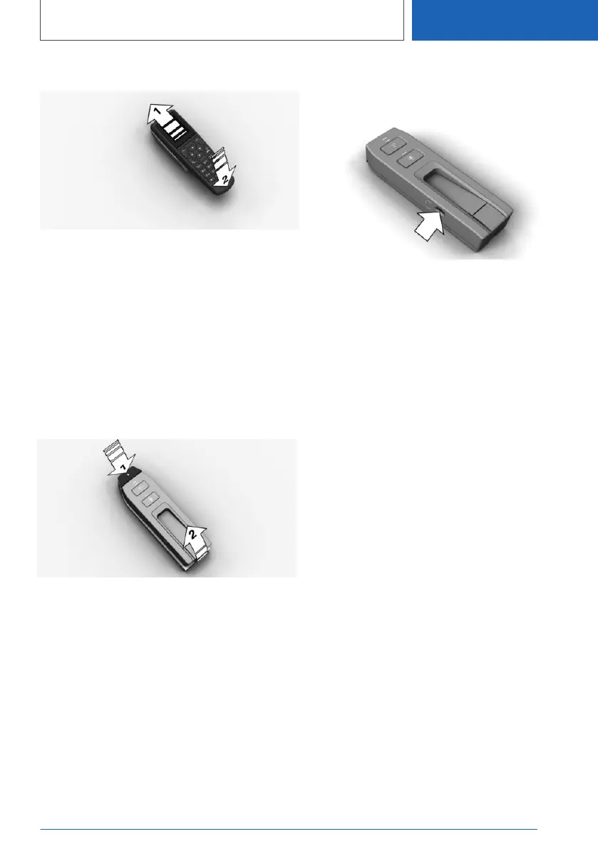 Insert the handset into the holder, arrow 1, and