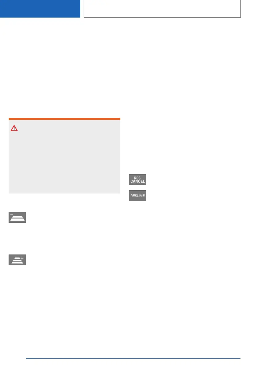 Cruise control is continued with the stored val‐