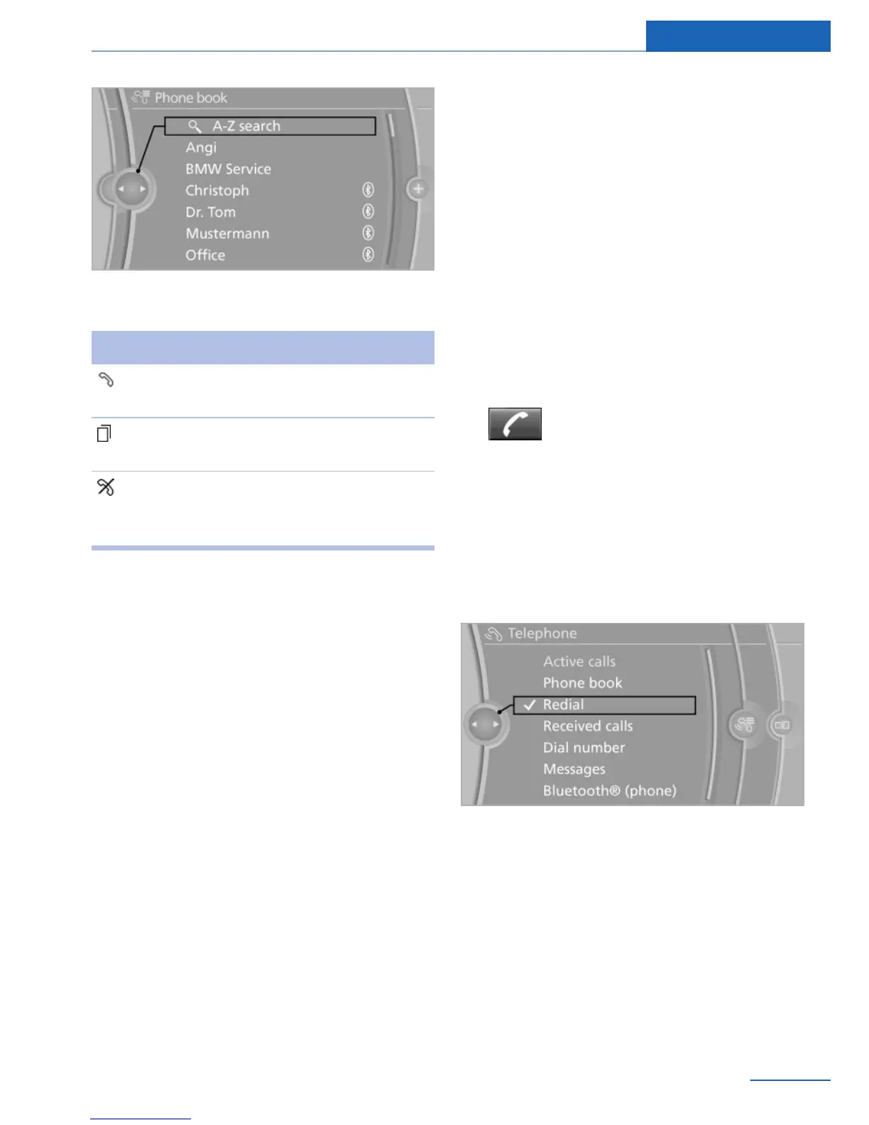 Dialing the number via the iDrive