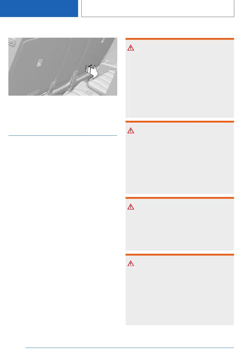 Pull the loop and fold the rear seat backrest for‐
