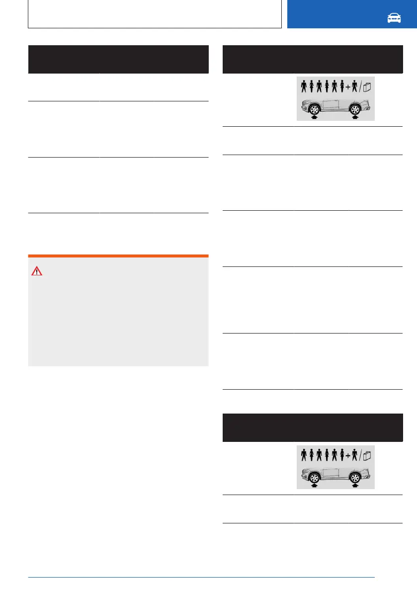 values in the tire inflation pressure table and