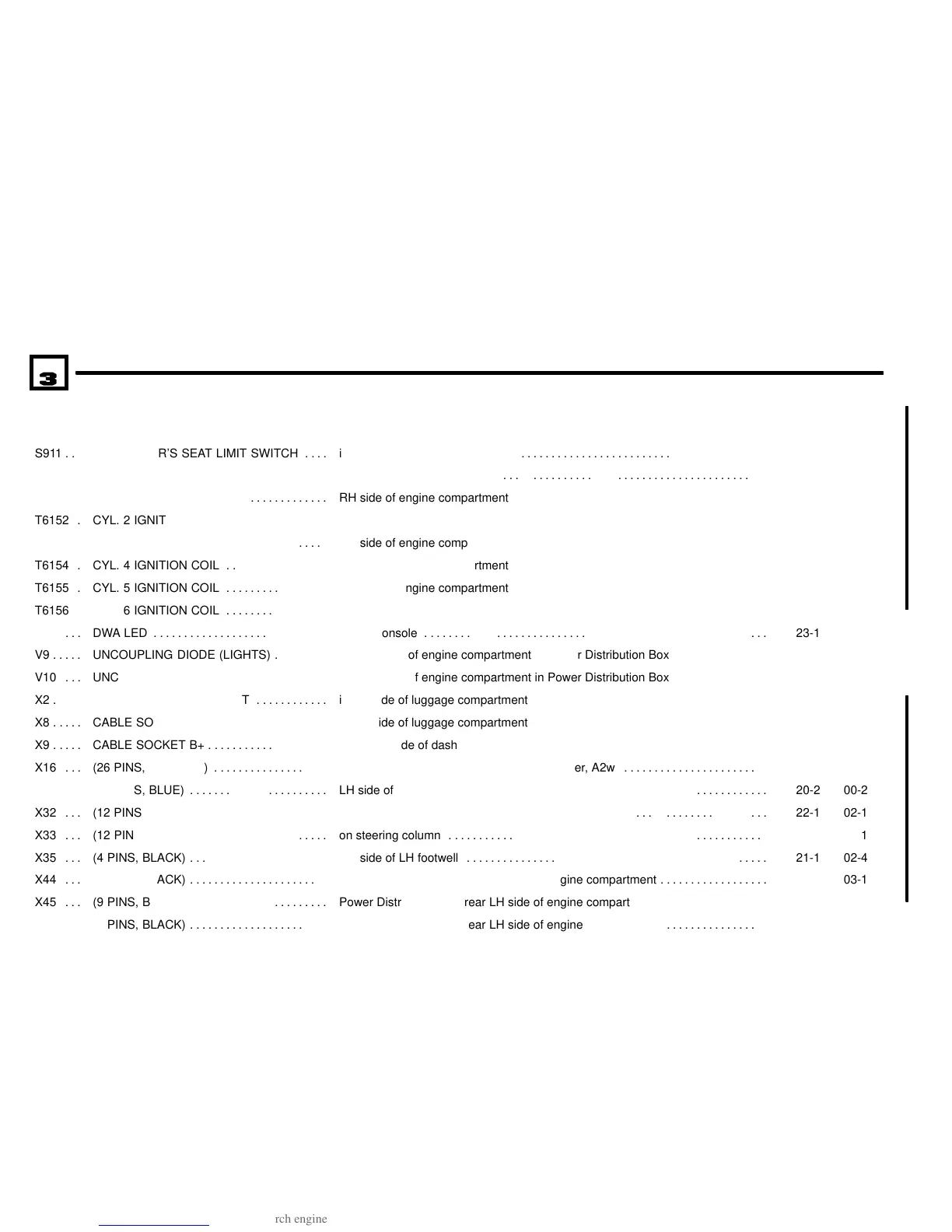 Power Distribution Box rear LH side of engine compartment . . . . . . . . . . . . . . . . . .