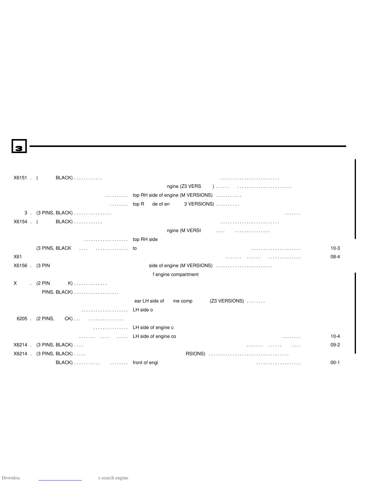 top RH side of engine (Z3 VERSIONS) . . . . . . . . . . . . . . . . . . . . . . . . . . . . . . . . . . . .