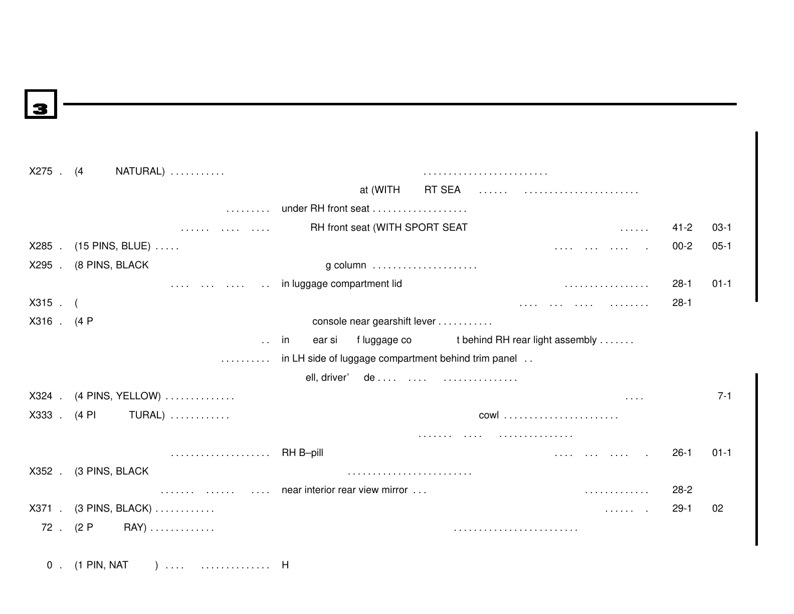 under RH front seat (WITH SPORT SEAT) . . . . . . . . . . . . . . . . . . . . . . . . . . . . . . . . . .