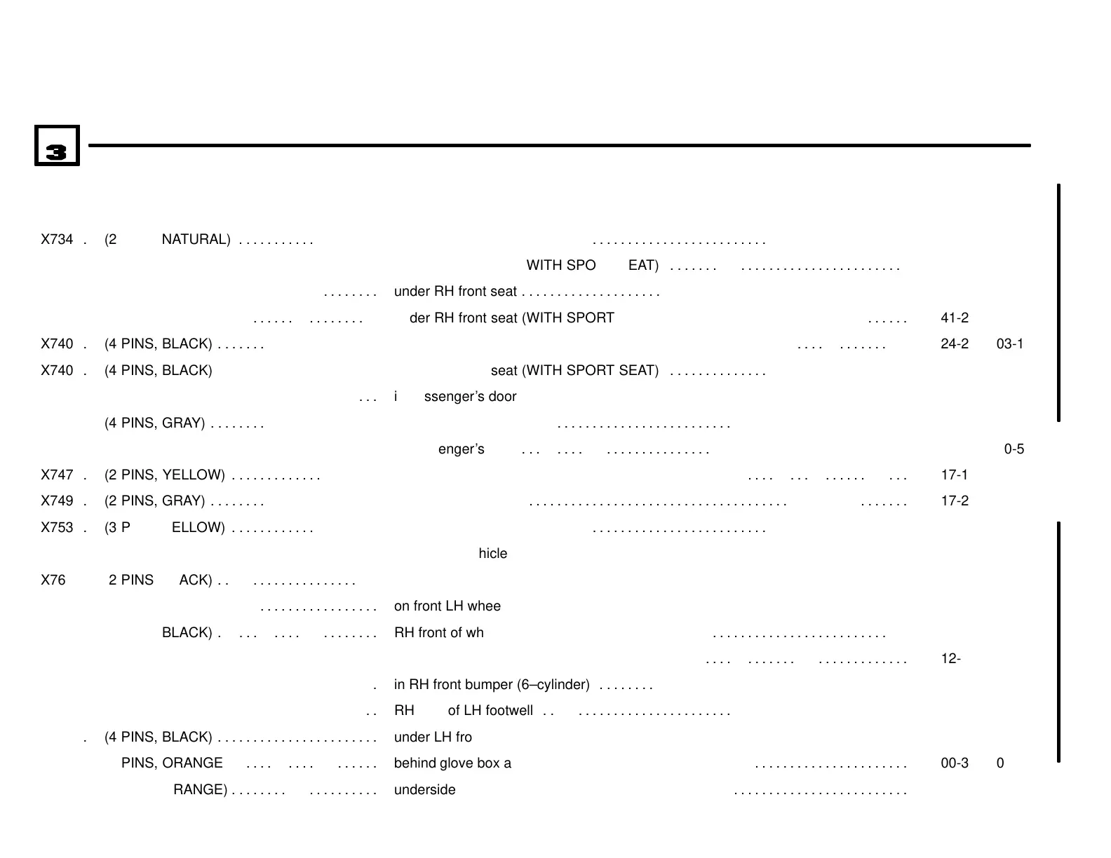 under RH front seat (WITH SPORT SEAT) . . . . . . . . . . . . . . . . . . . . . . . . . . . . . . . . . .