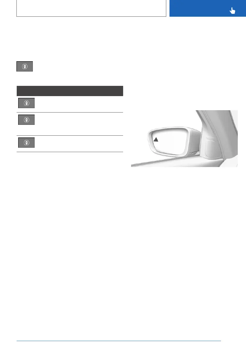 The dimmed light in the exterior mirror indicates