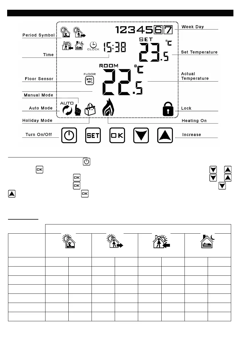 Programming - The controller is preset to the following times and temperatures:-