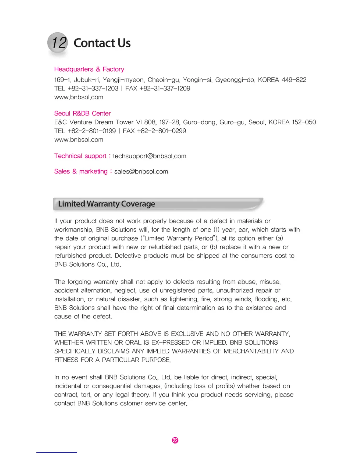 BNB Solutions Everlock BDS312 - 12. Contact Us