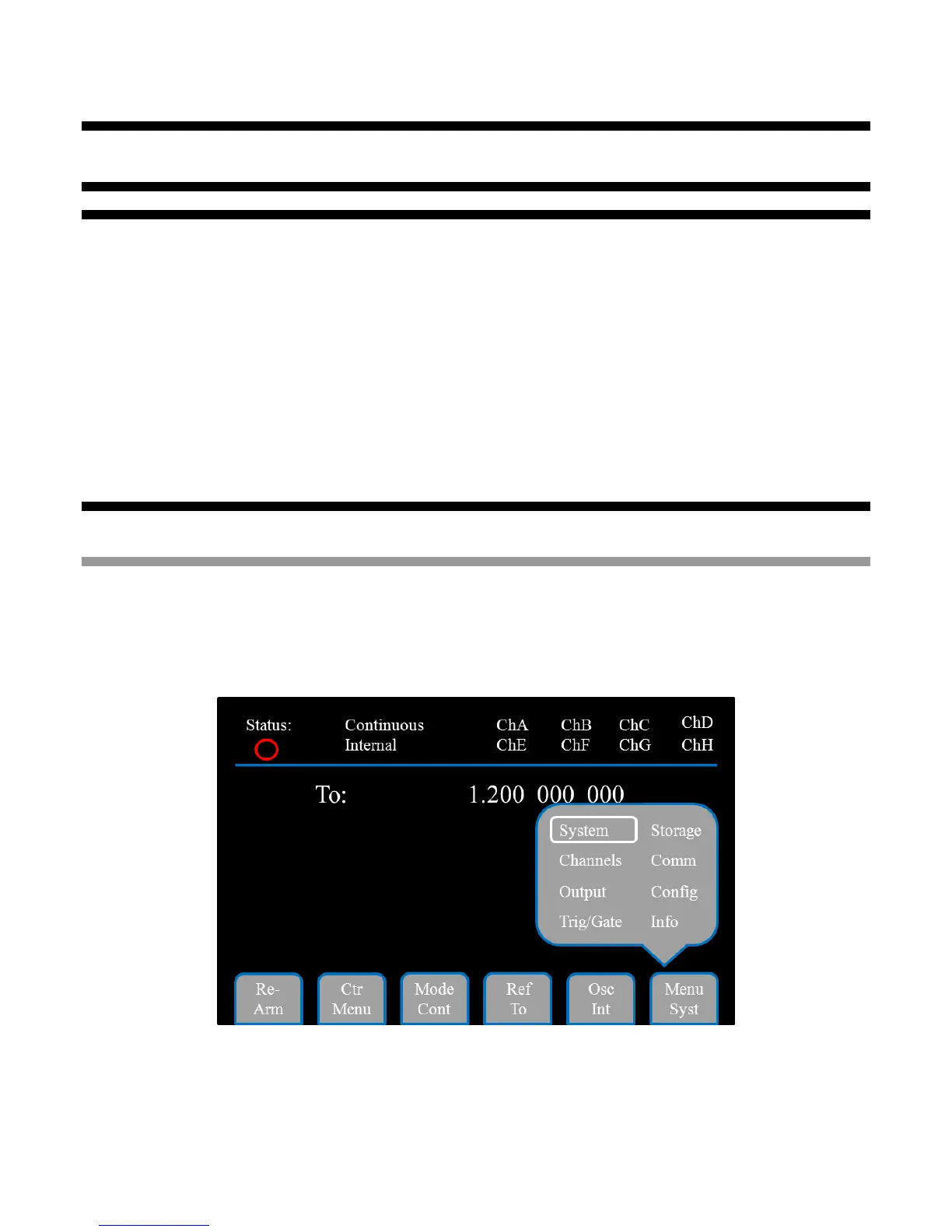 allow the user to return to the System menu, select the Channel and Output menus, enable and configure a Gate