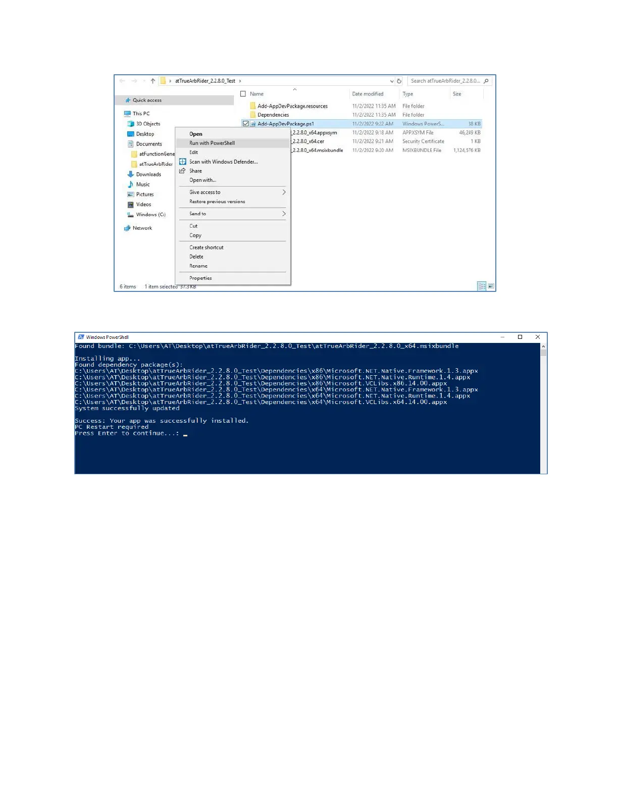 3. When the application has been installed, press the “Enter” button to continue.