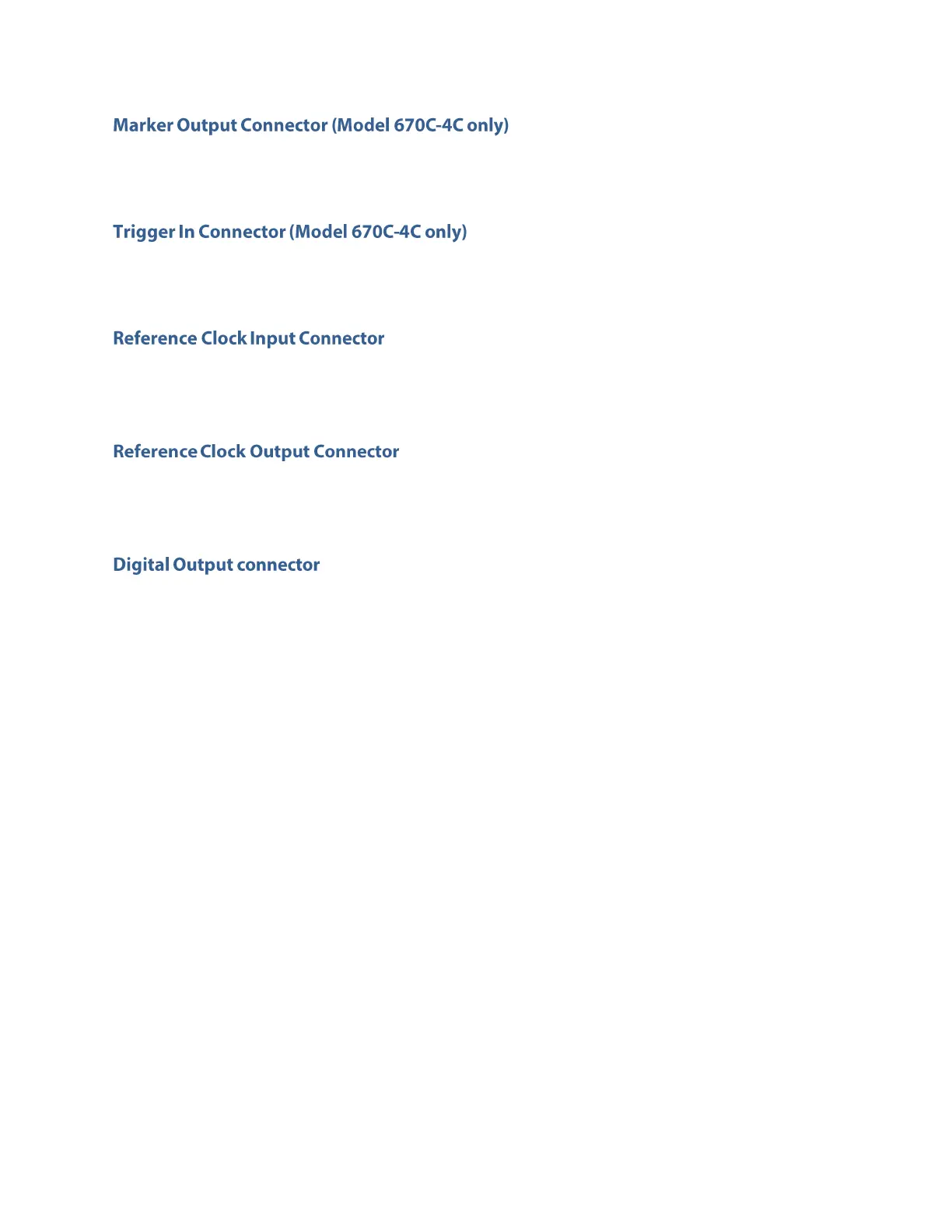 The Marker Out BNC connector is located on the rear panel in the Model 670C-4C models. See