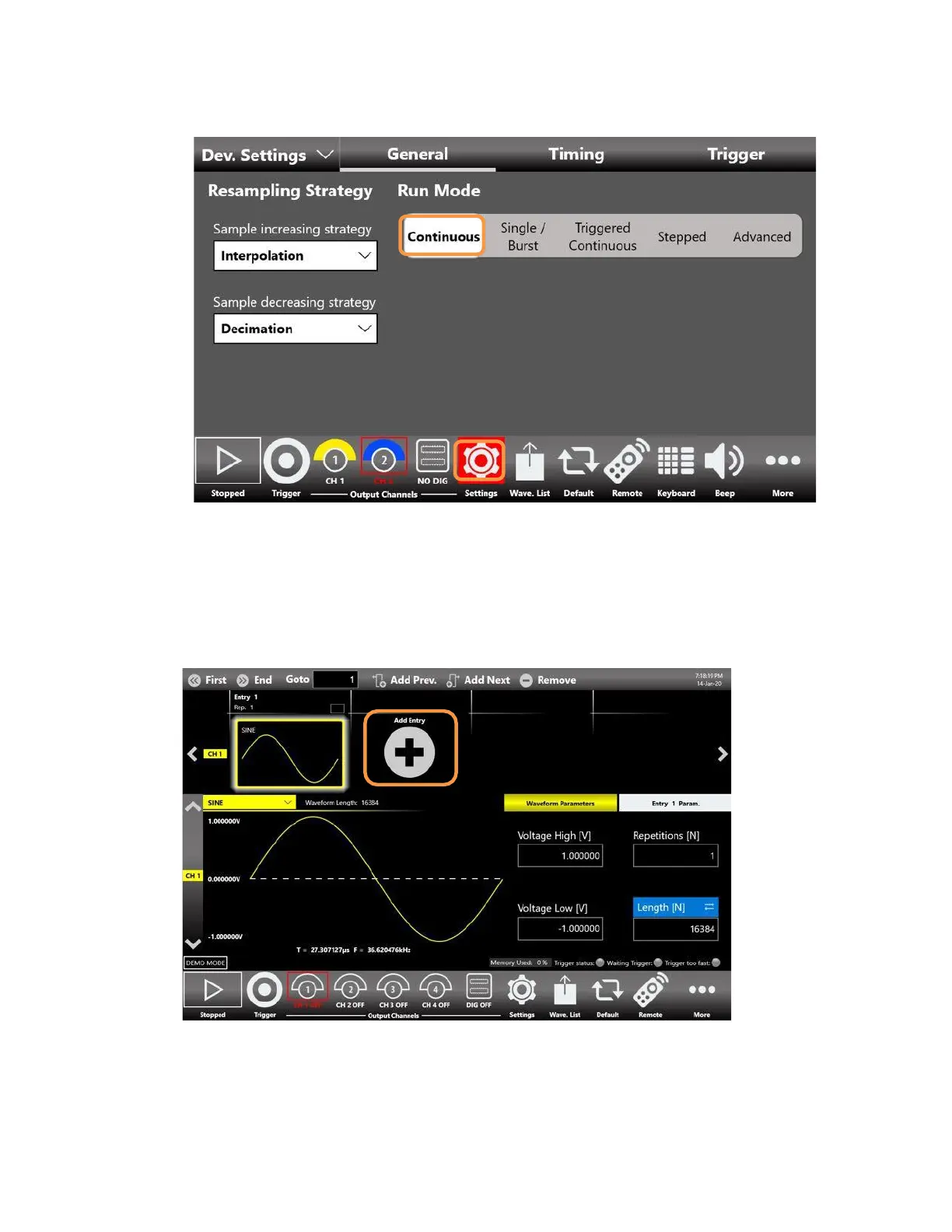 entry with a sine waveform. Touch the Add Entry button to insert a new entry into the