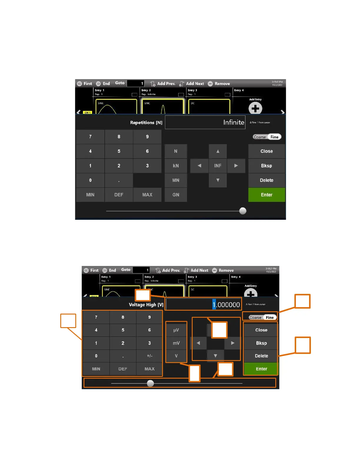 1. Parameter Name and Value: This area of the virtual keyboard displays the parameter name,