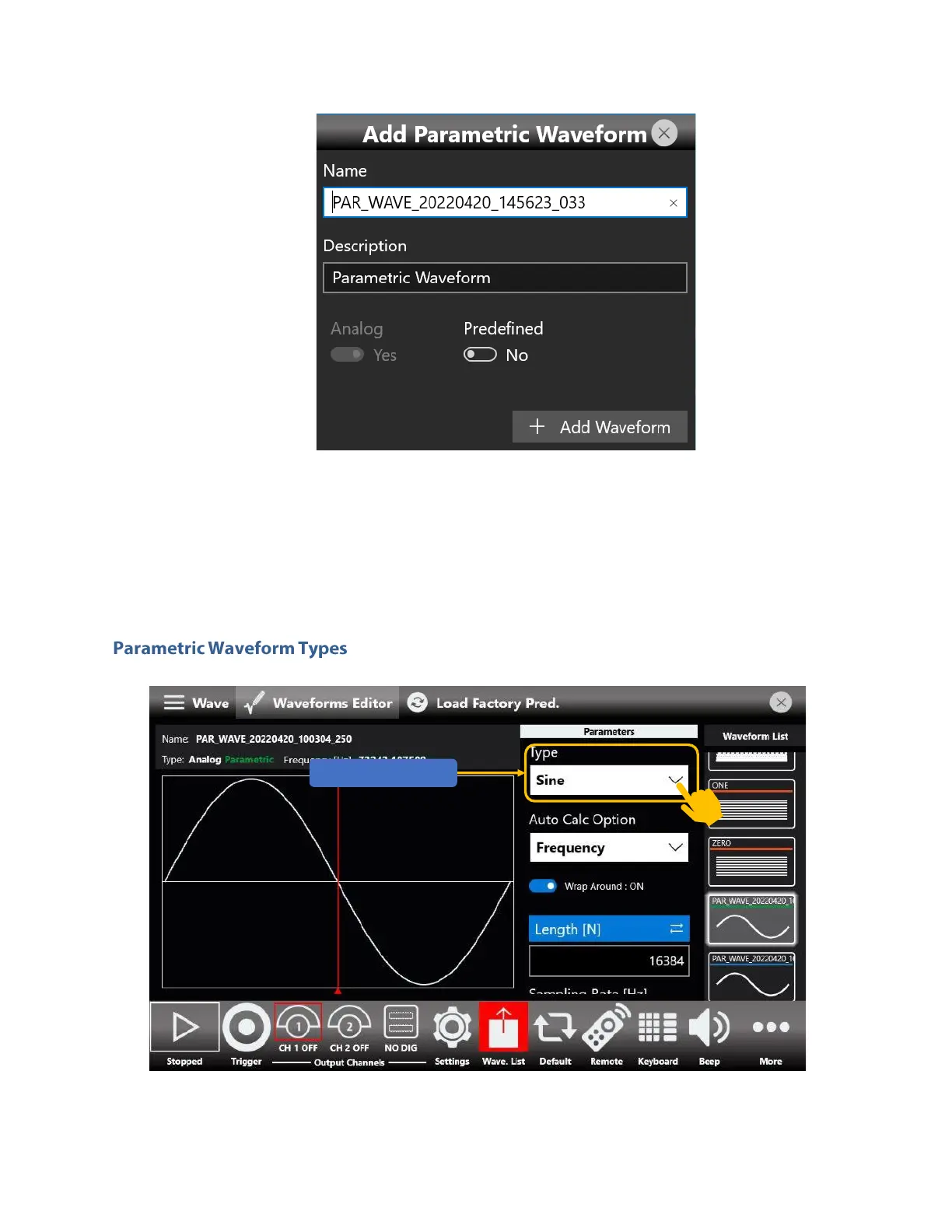 BNC 670C - Parametric Waveform Types