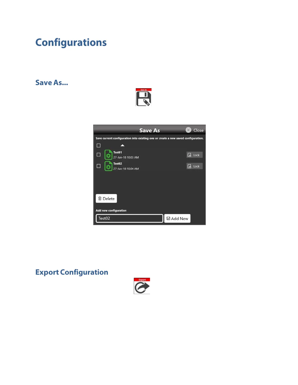 dialog box. The configuration will be saved in the configuration list that can be accessed by the “Load