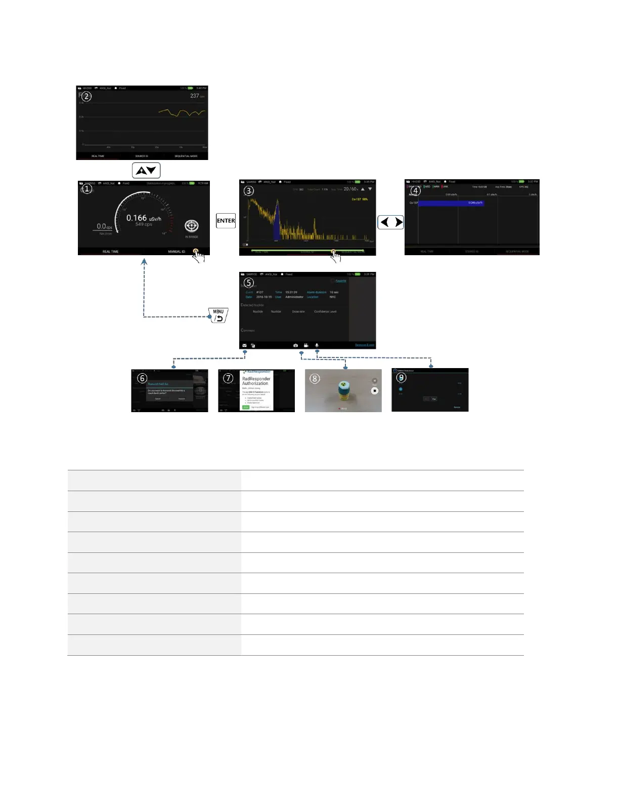 Dose rate, Count rate, System status, menu and battery indicator