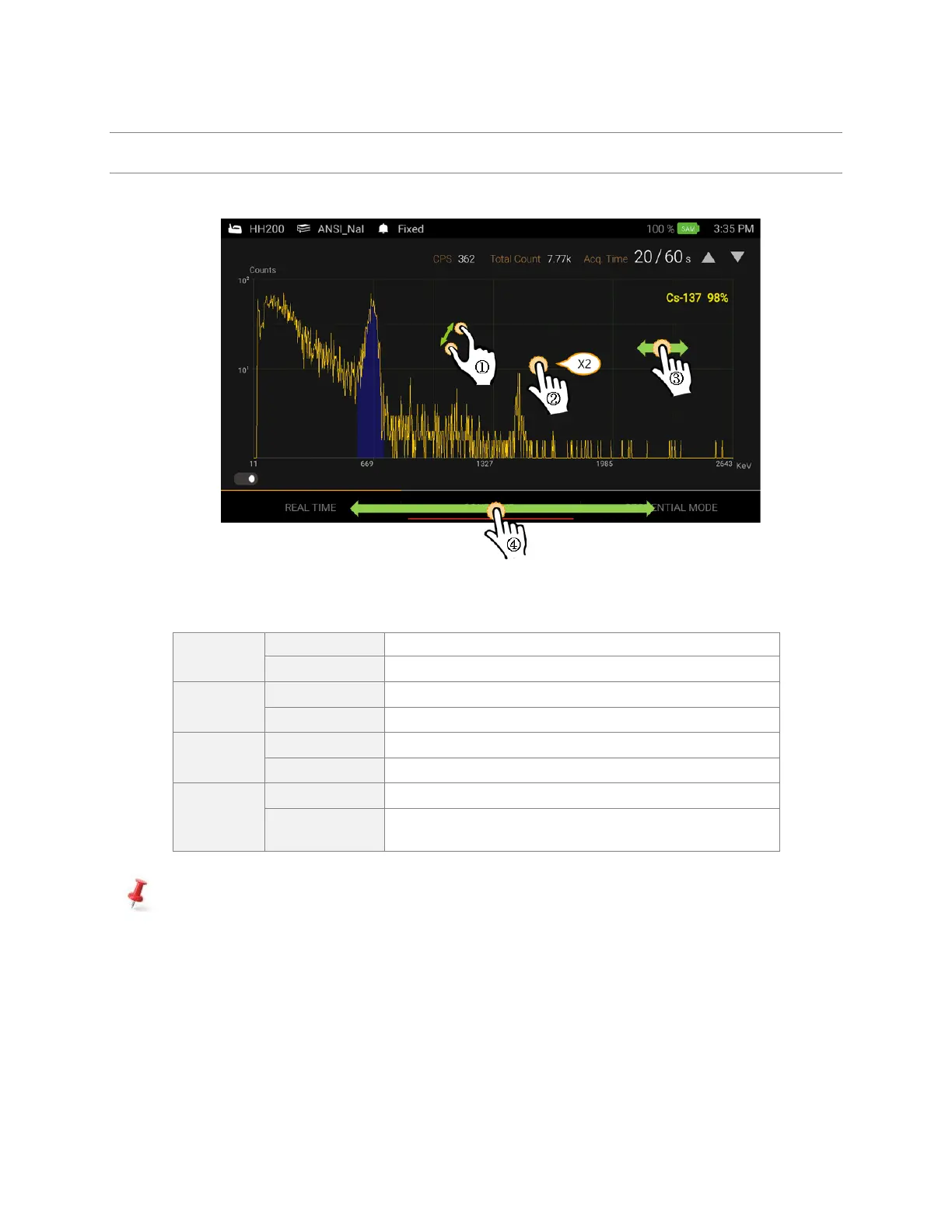 Spectrum view manipulation is achieved by touching the PDA display as shown in figure 4.25. below.