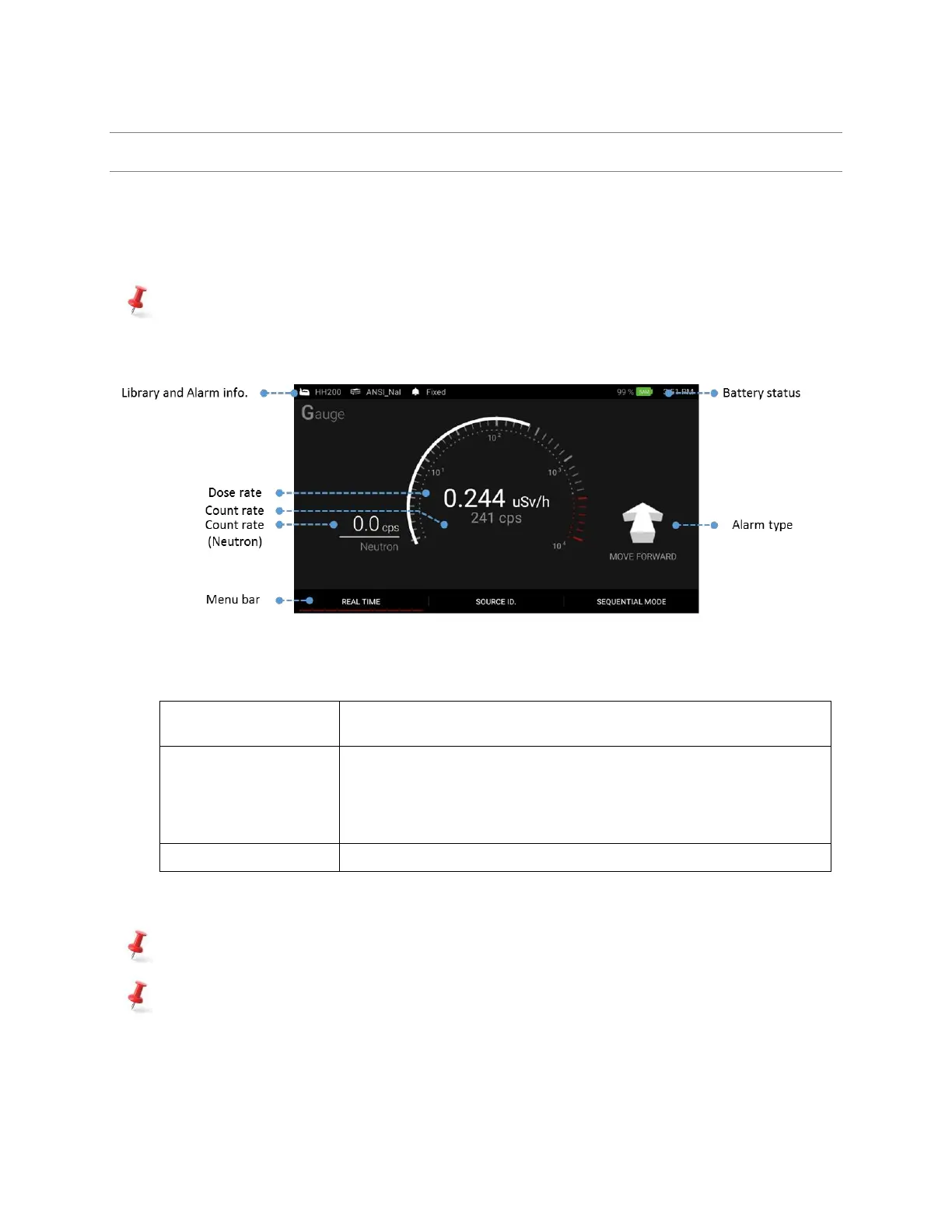 1. Gamma activity is displayed in both dose-rate (uSv/h or rem/h) and count rate (cps) units.