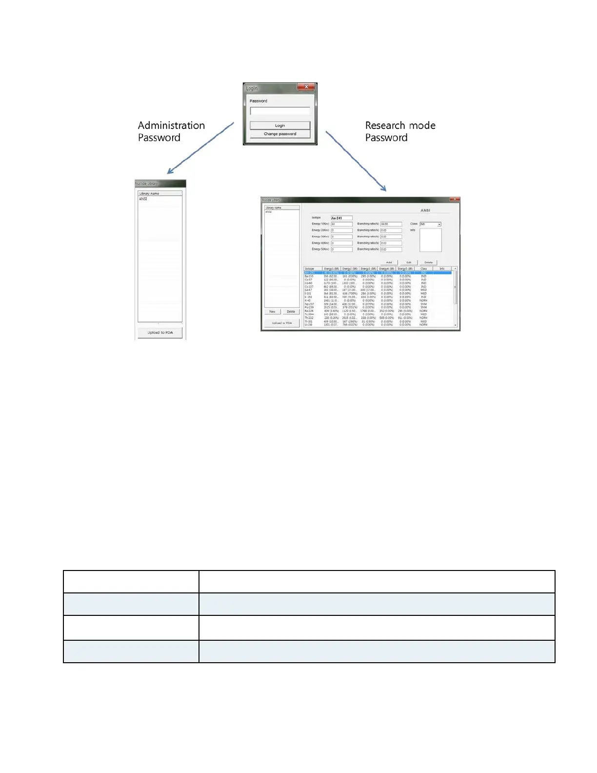 1. Open the nuclide library by clicking the “Isotope Library” button. The Nuclide library management