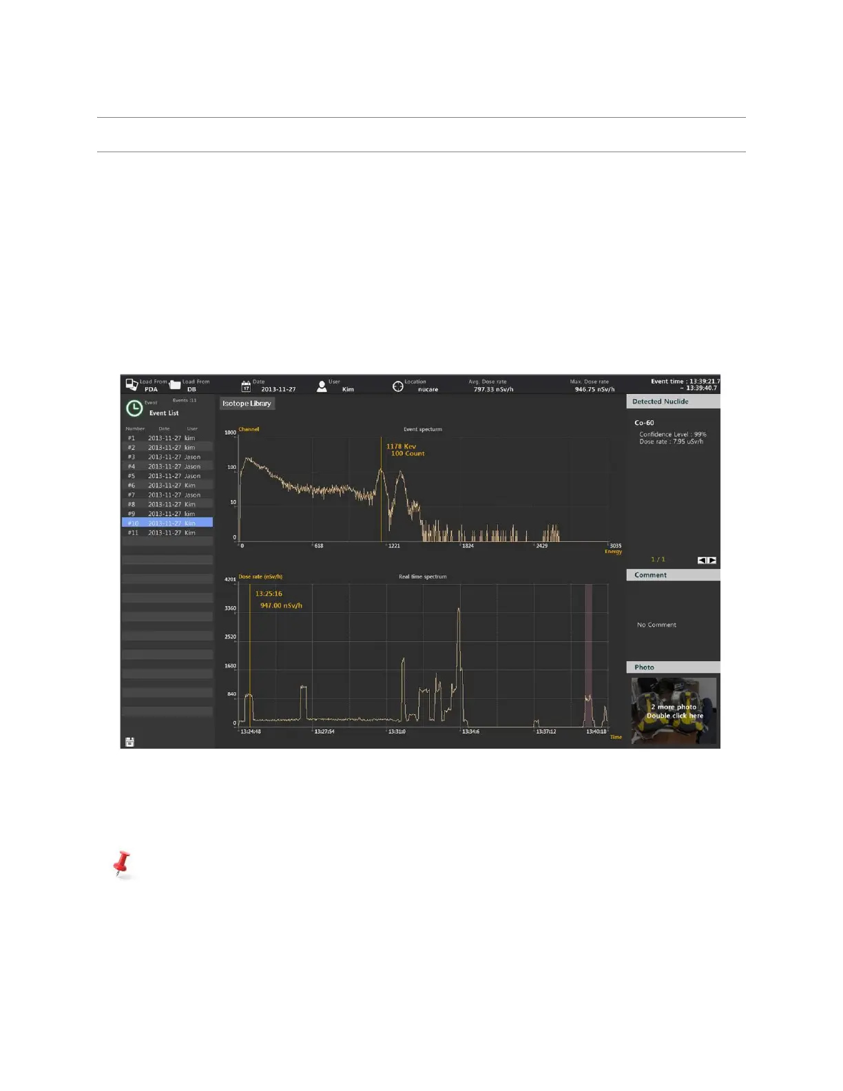 6. Nuclide identification information for the selected event is displayed in the “Detected Nuclide”