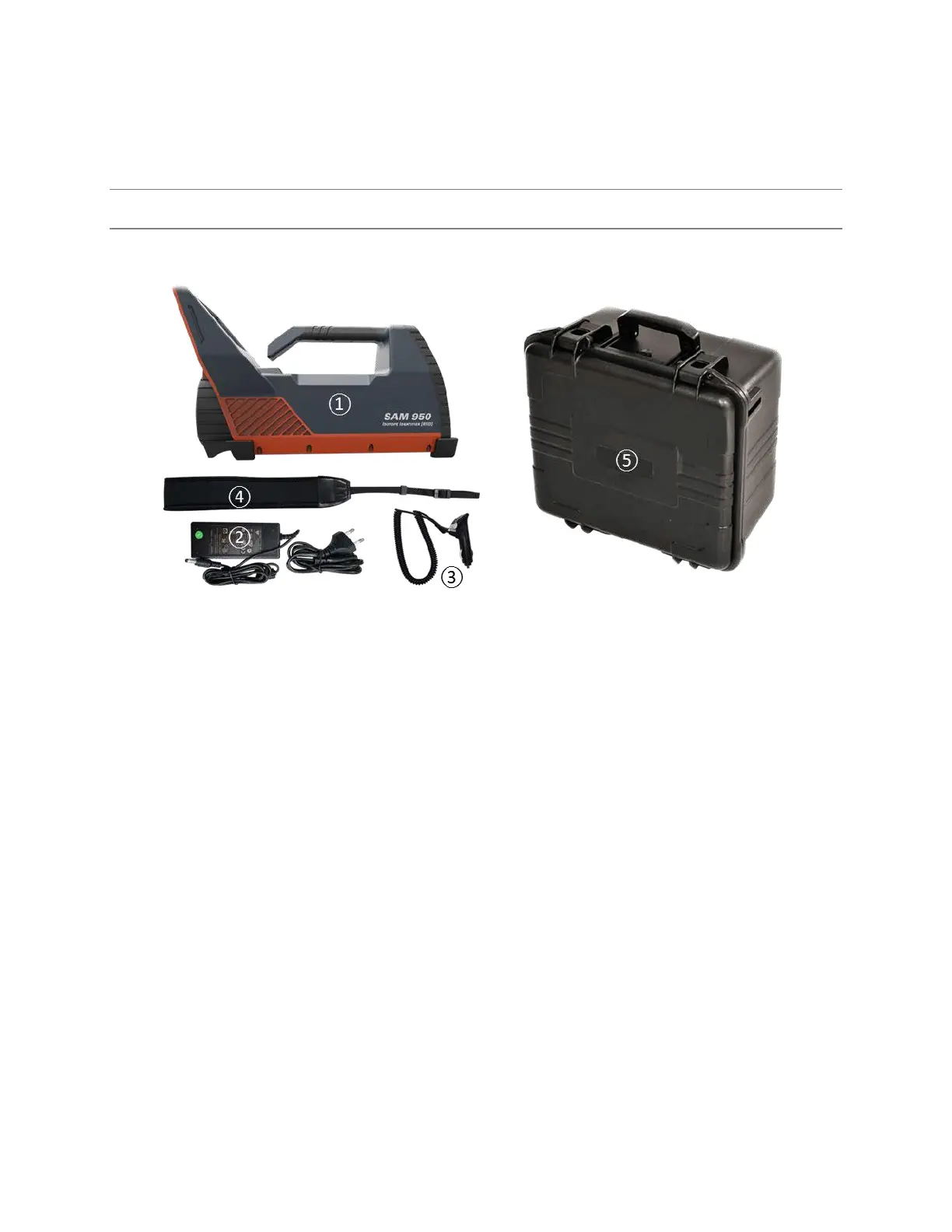 Figure 3.1. SAM 950 Components, its accessories and carrying case