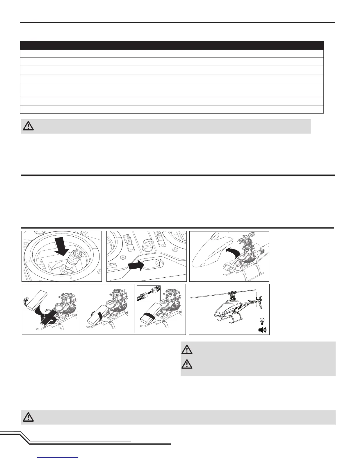 CAUTION: AlwaysdisconnecttheLi-Pobatteryfromtheaircraftreceiverwhennotyingtoavoidover-dischargingthebattery.Batteriesdischargedtoa