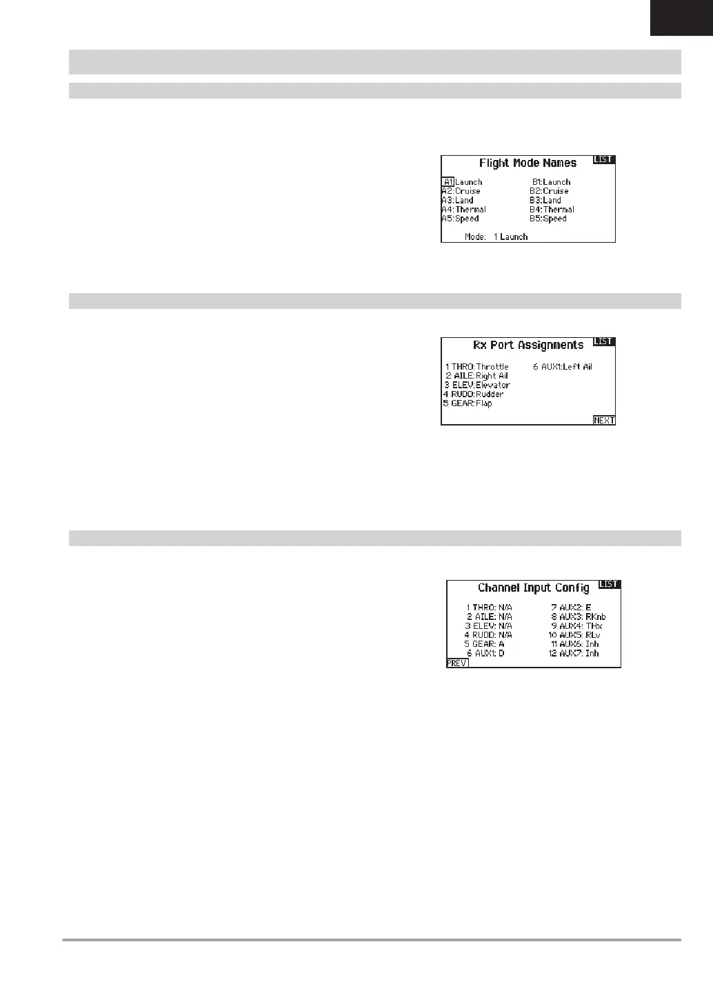 The Flight Modes Name function allows the flight modes to be