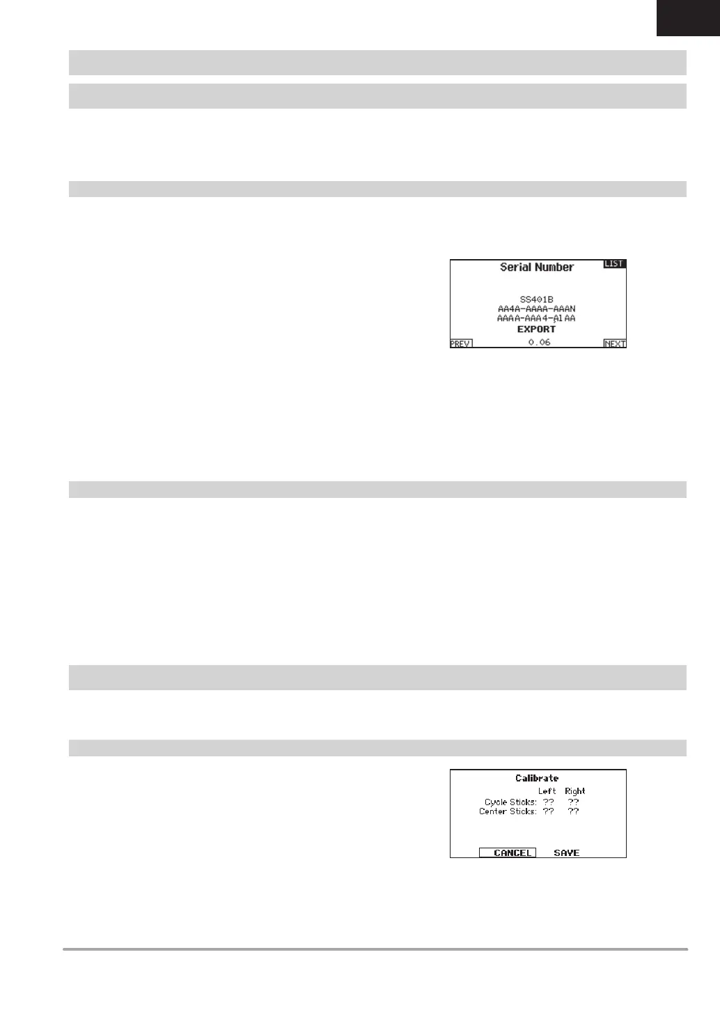 Reference the Serial Number screen any time you need to register your transmitter or update the AirWare software from the Spektrum