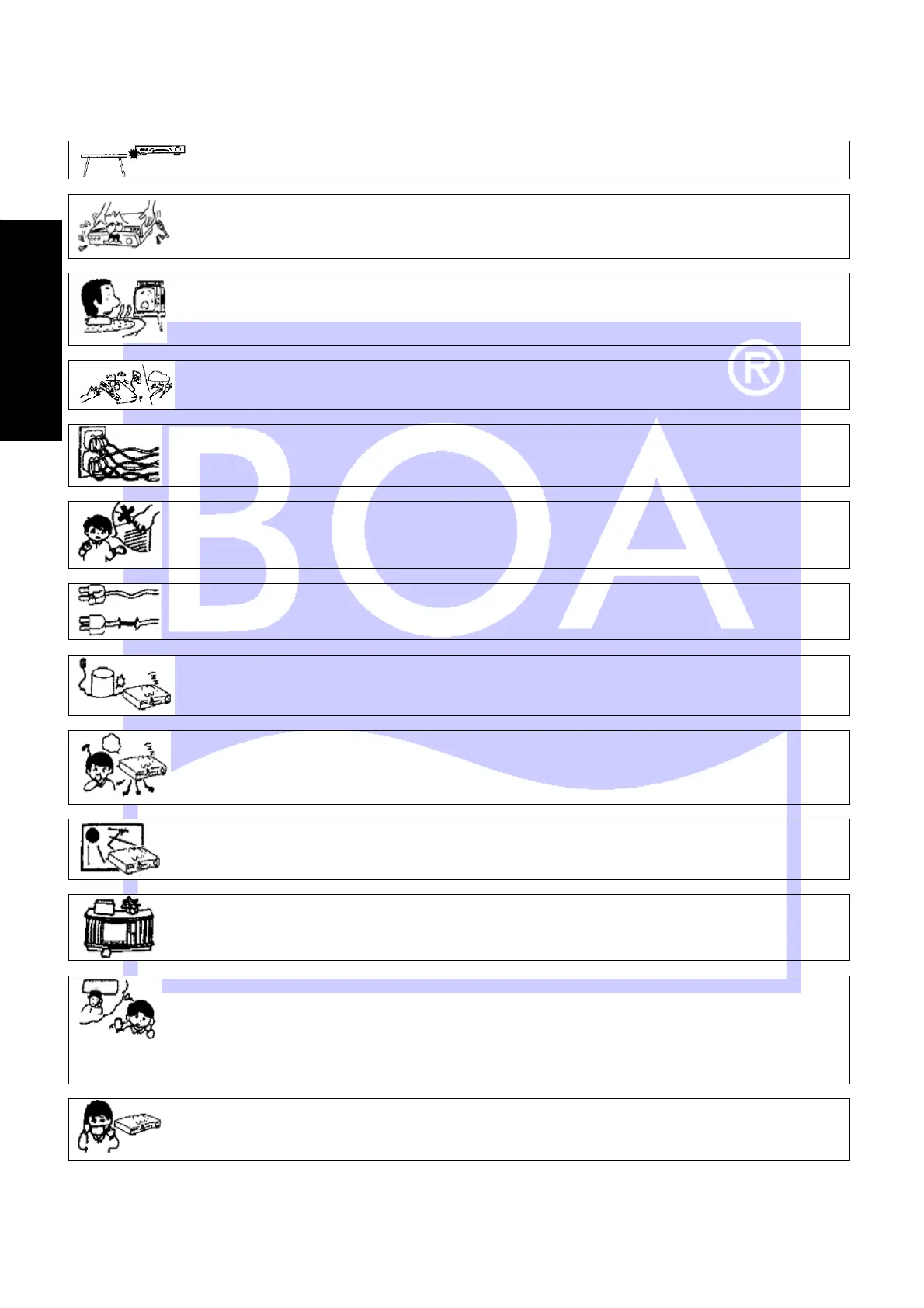 If smoking, abnormal sound or peculiar smell happens, disconnect the power source. Stop