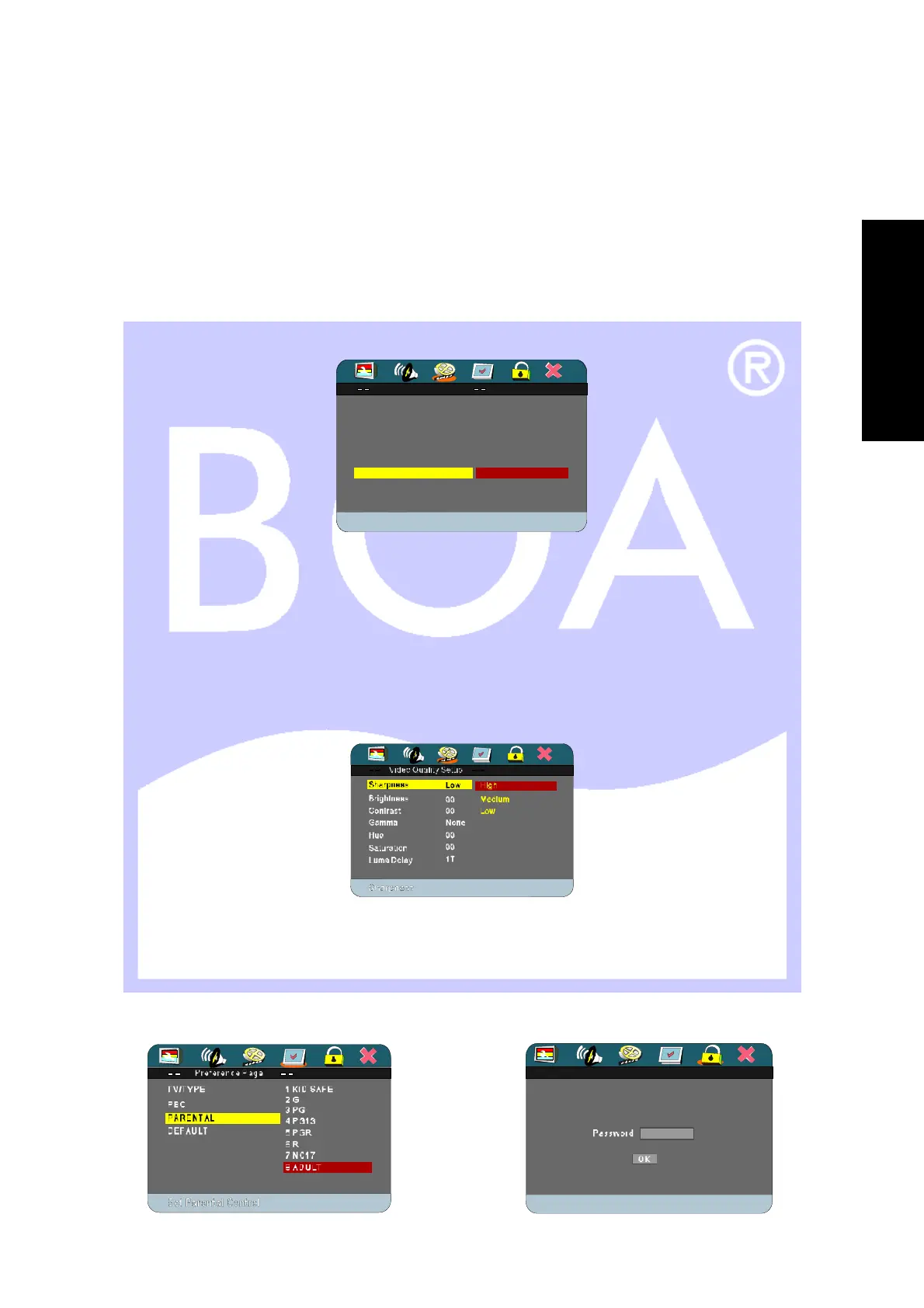 Move the blue bar to Parental and press [ENTER], Use [►] to move the yellow bar to extended menu, a sub-