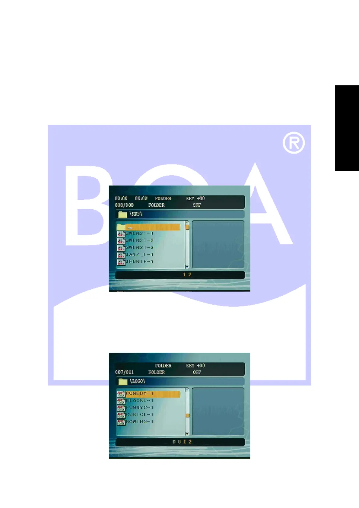 4. Highlight the Music file and press the [PLAY] button to start playing your music.