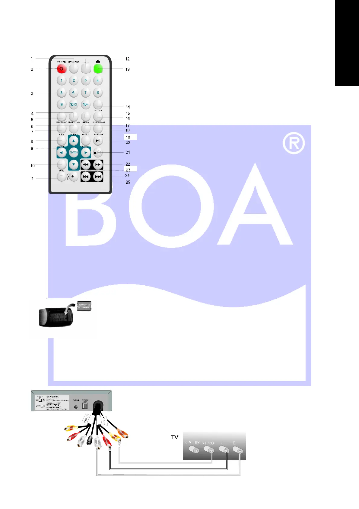 Markierung des Batteriefaches eingelegt werden. Während der Benutzung der Fernbedienung, richten Sie diese