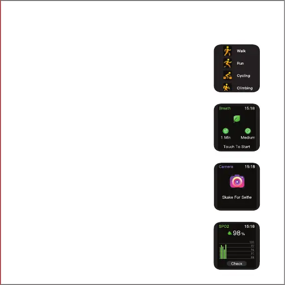 sports modes: Walking, Running, Cycling, Climbing, Yoga,