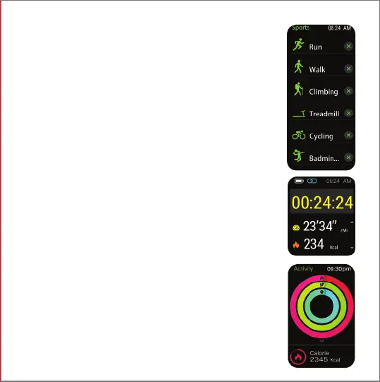 Tap on the sports icon to choose from: Running, Treadmill, Walking,