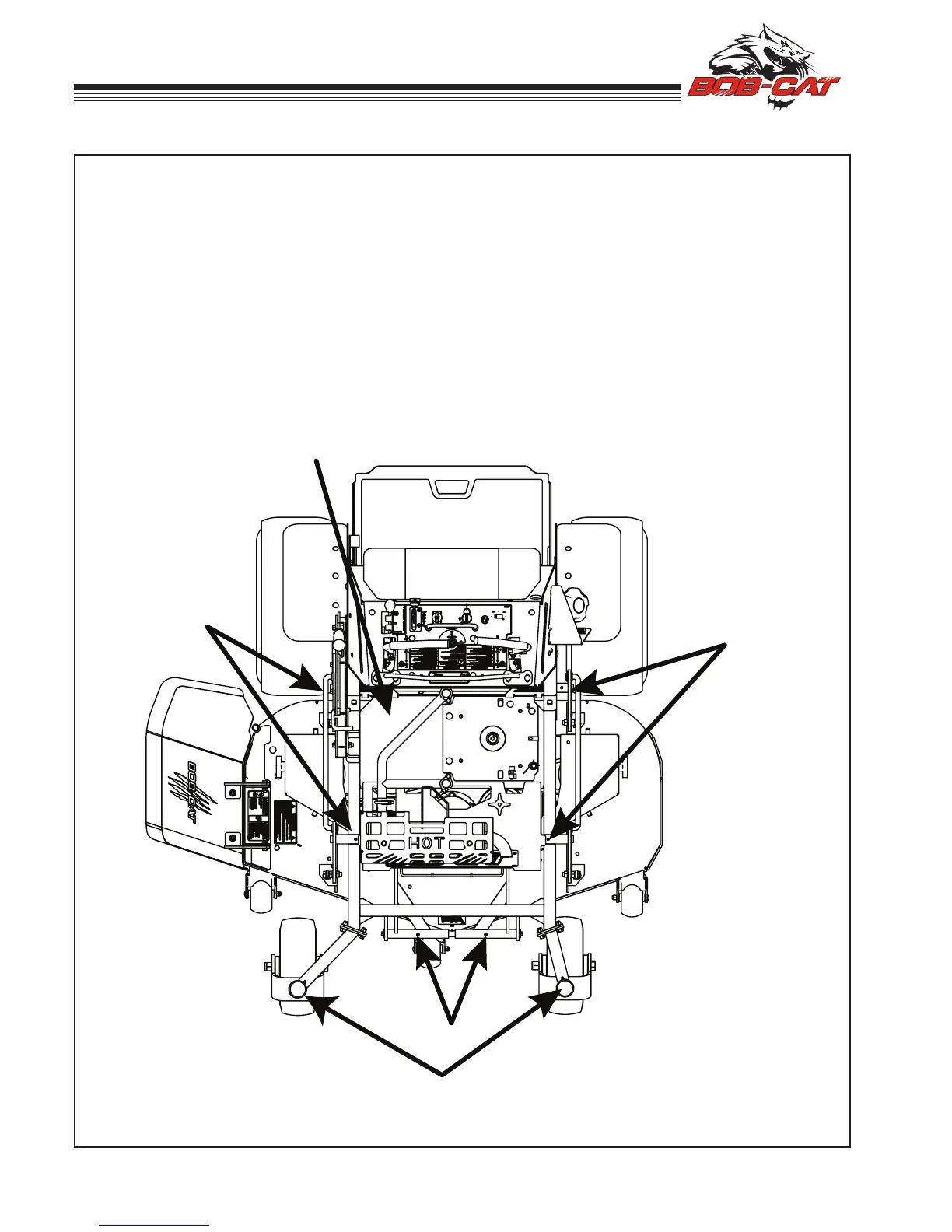 Every 50 hours of operation, lubricate the following points (1-3) with grease: