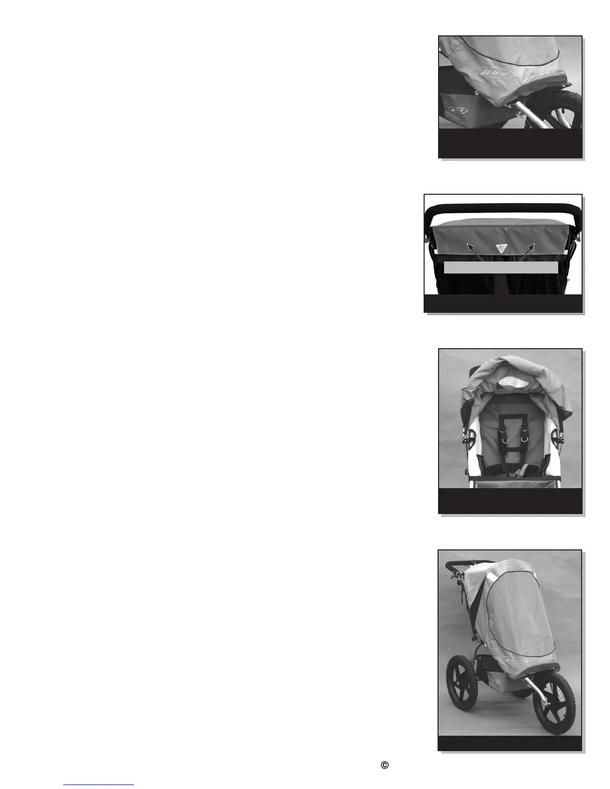 of stroller, then lift up, stretch and roll over the forward edge of stroller canopy as shown