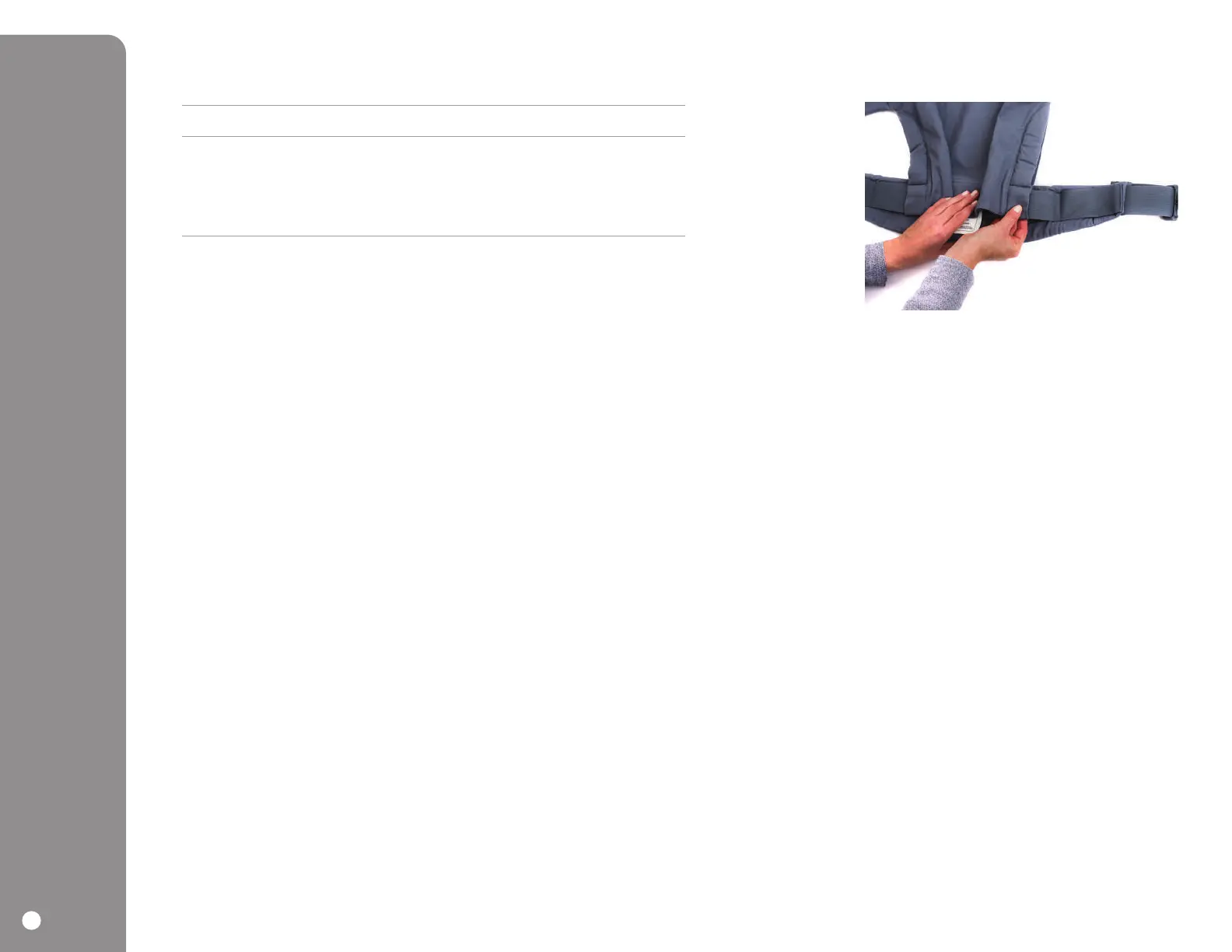 Au niveau de la partie ventrale la ceinture, ajustez la largeur de l’assise en rapprochant les bords du tablier, vers le milieu du tablier, et xez-les avec le Velcro. Vous pourrez