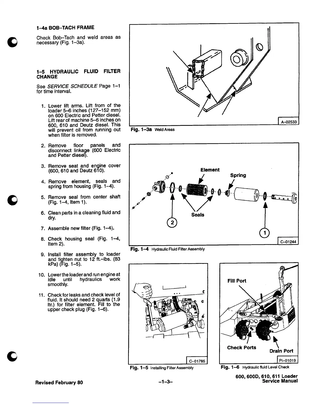 Bobcat 600 - Bob-Tach Frame Inspection; Weld Area Inspection; Hydraulic Fluid Filter Change; Filter Replacement Procedure