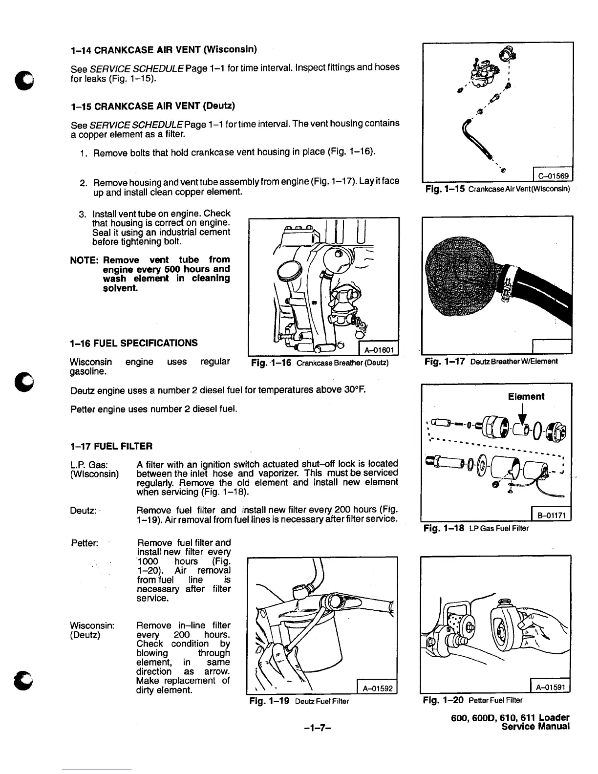 Bobcat 600 - Wisconsin Crankcase Air Vent; Vent Inspection and Maintenance; Deutz Crankcase Air Vent; Vent Element Service