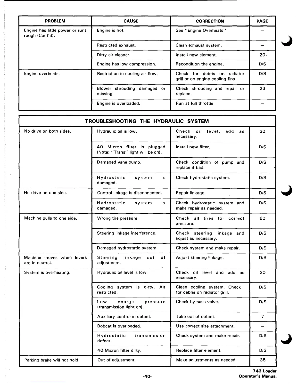 Bobcat 743 - Troubleshooting the Hydraulic System