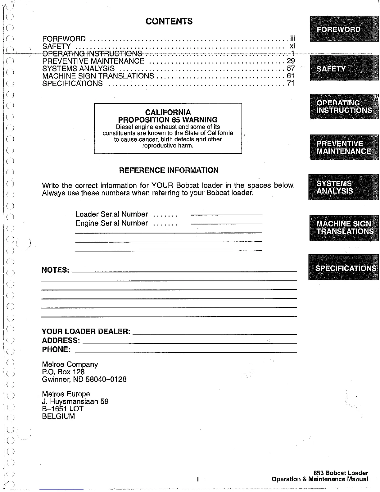 Other manuals for Bobcat 853