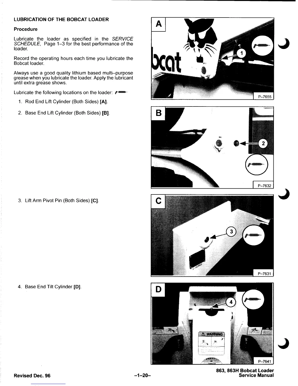 Bobcat 863 - Lubrication of the Bobcat Loader; Lubrication Points