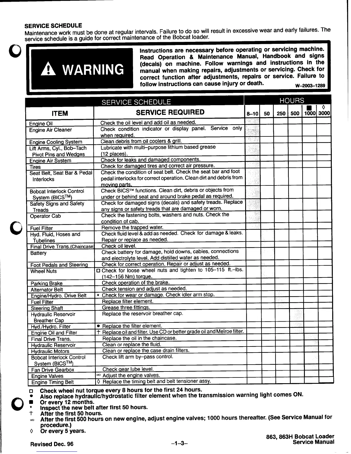 Bobcat 863 - Service Schedule