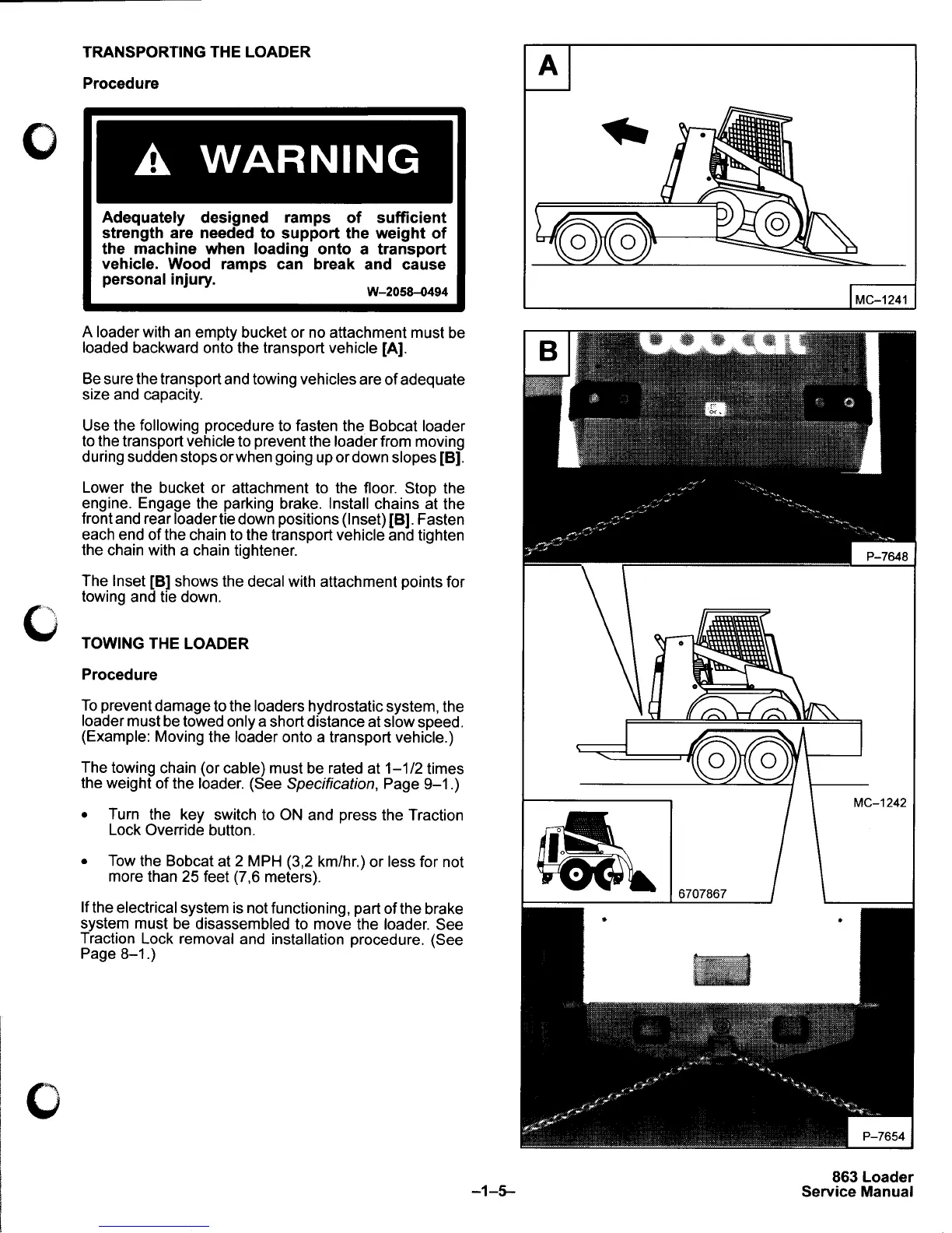 Bobcat 863 - Transporting the Loader; Towing the Loader