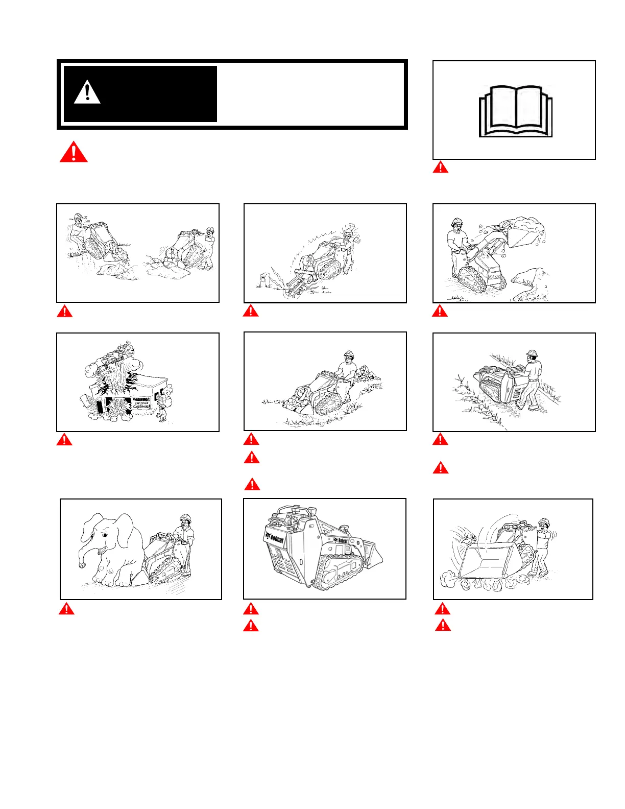 The Bobcat Loader must be equipped with safety items necessary for each job. Ask your dealer about attachments and