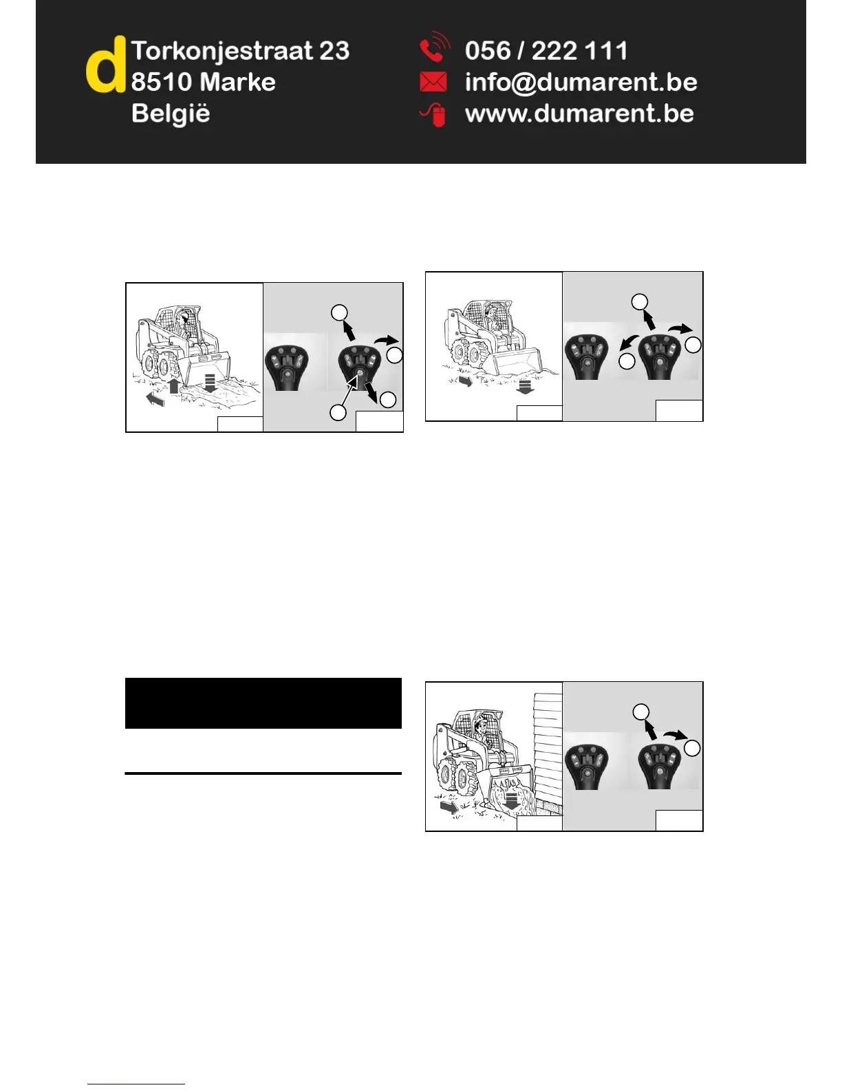 Lower the lift arms (Item 1) and put the cutting edge of