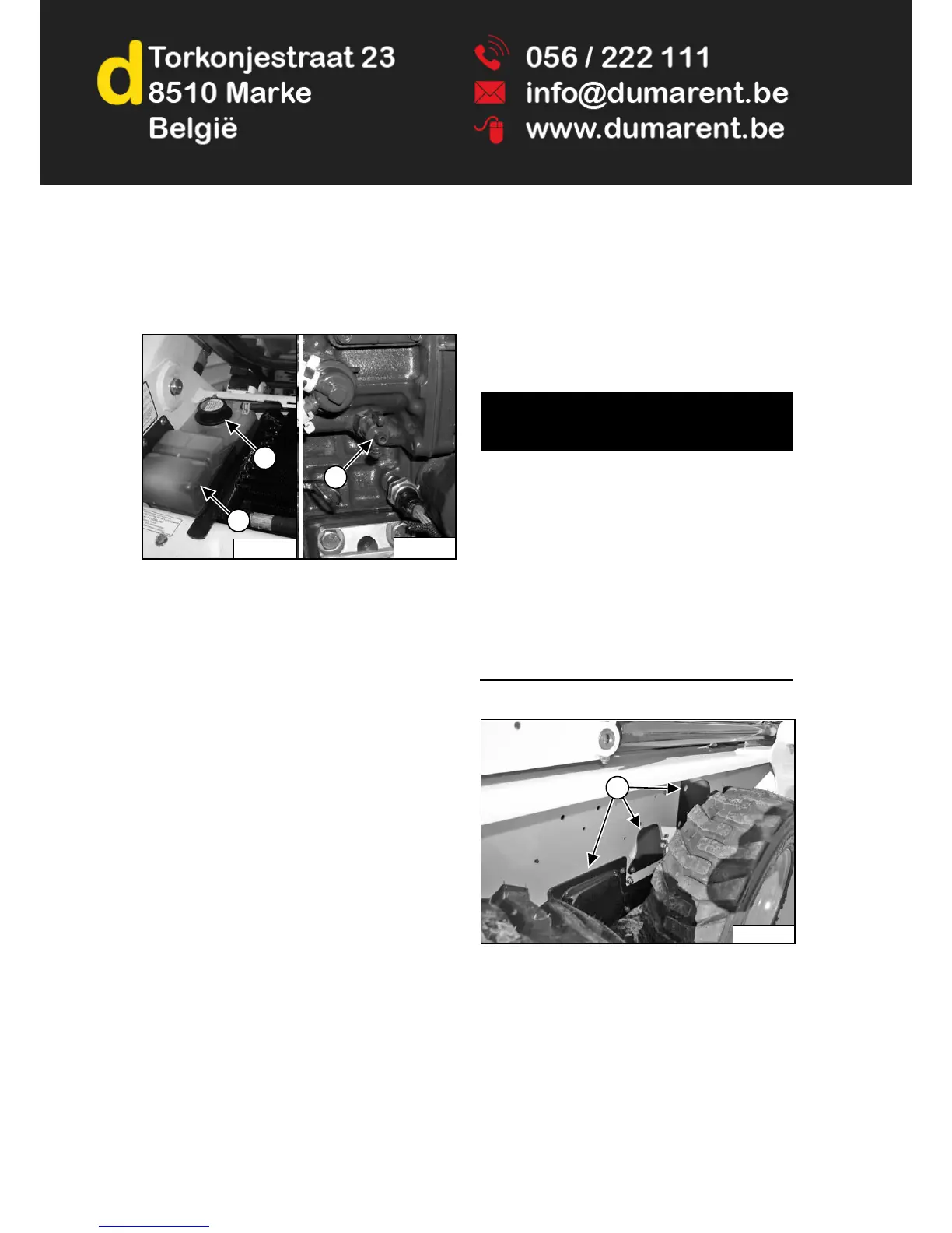 Close the rear door before operating the loader.