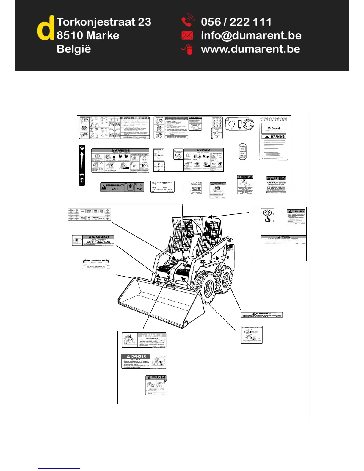 and be sure they are in the correct locations. Machine signs are available from your Bobcat loader dealer.