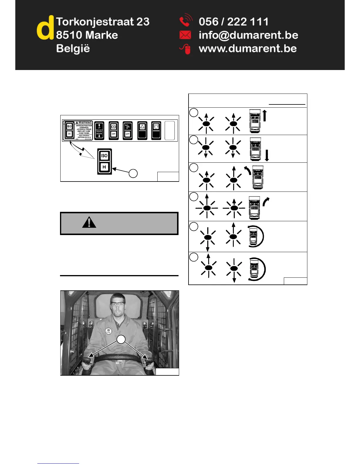 Both joysticks control drive and steering and are located