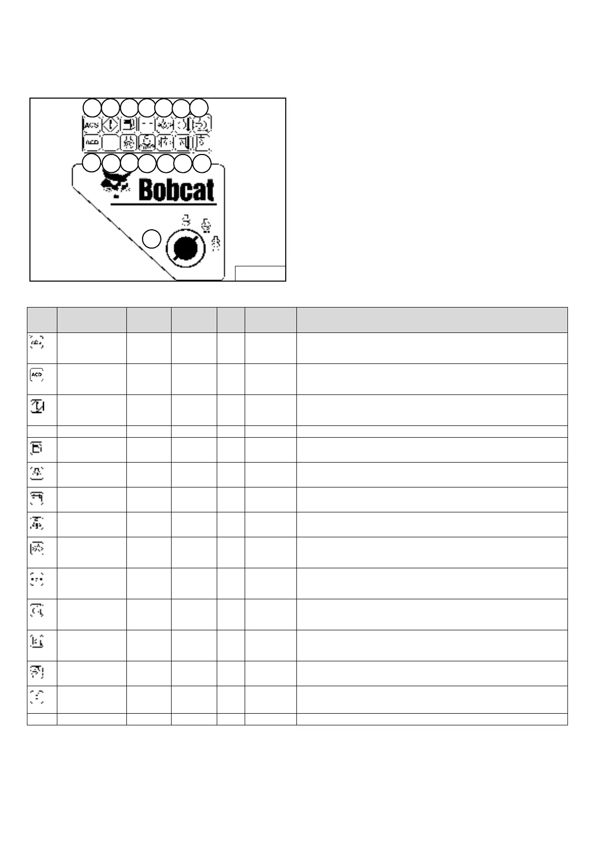 Seat Belt ON --- --- --- Light stays on for 45 seconds to remind operator to fasten seat belt.